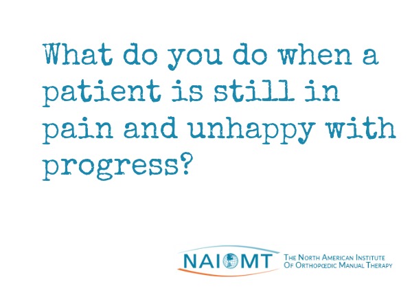 What do you do when a patient comes in and is disappointed that they are not better? When they are unhappy with the progress and are still in pain? When they seem to be losing faith in you and your treatment? This is something I’ve experience recently, and it got me thinking about the importance of setting progress expectations with patients right from the start. It also had me considering how best to proceed on a positive path, when the patient feels we have hit a wall.